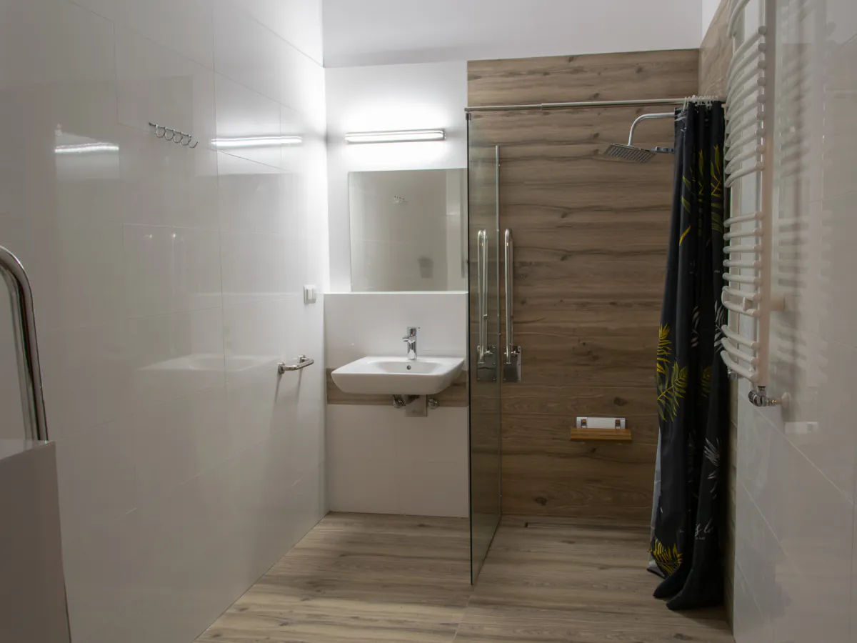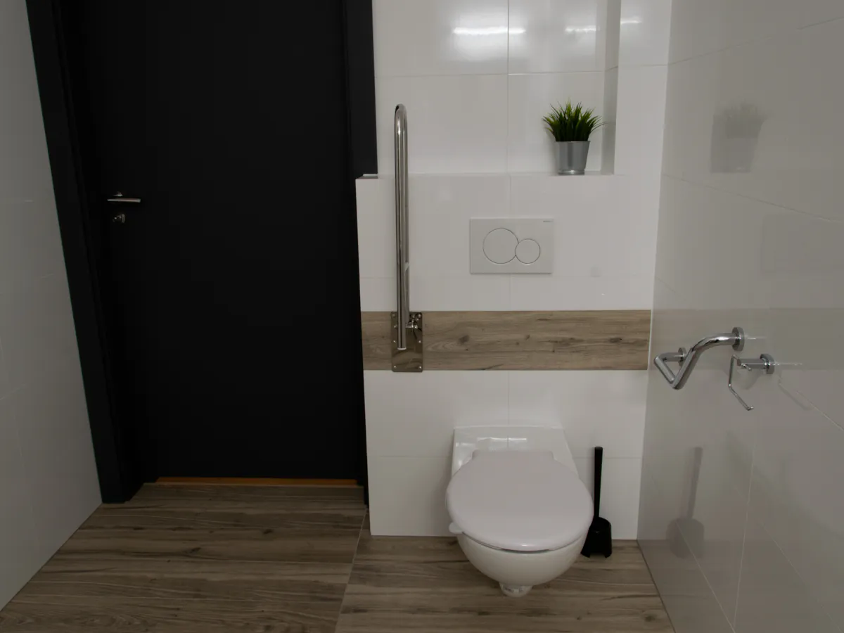 W trosce o komfort wszystkich naszych klientów, obiekt posiada szeroki podjazd oraz pokój z łazienką wyposażone w niezbędne akcesoria dla osób z niepełnosprawnościami.